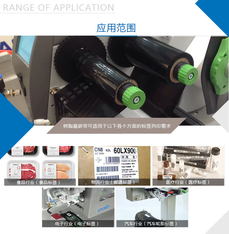 適用范圍廣,個行業(yè)也都有涉及,如:服裝行業(yè)的布標(biāo)打印、食品標(biāo)簽的打印、電子標(biāo)簽的打印等等。
